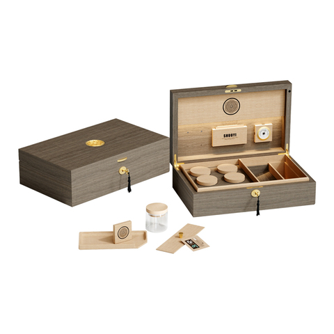 Aanpasbare Bamboe Massief Houten Voorraaddoos Voor Roken Met Lade En Logo Premium Opslagoptie